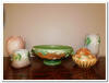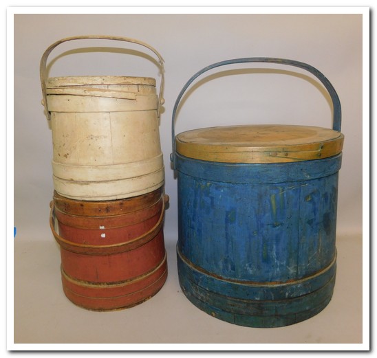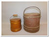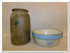 crocks, wood turned bowls, painted firkins, figural lightening rod