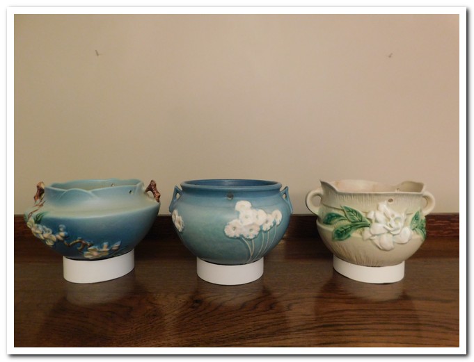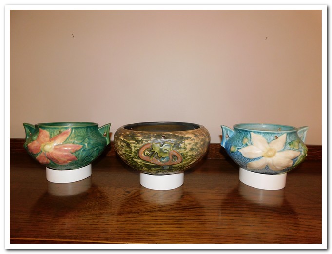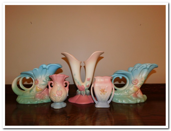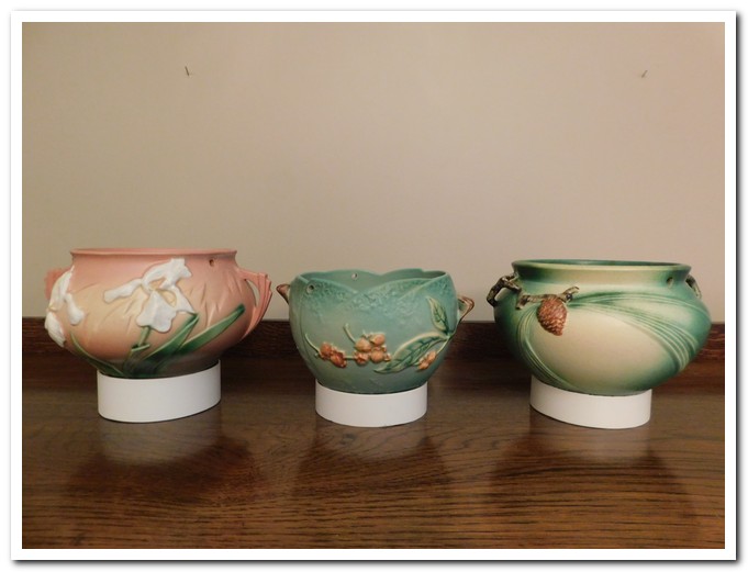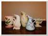 of Franciscan Desert Rose dishes, Roseville baskets, Hull pottery, lot of