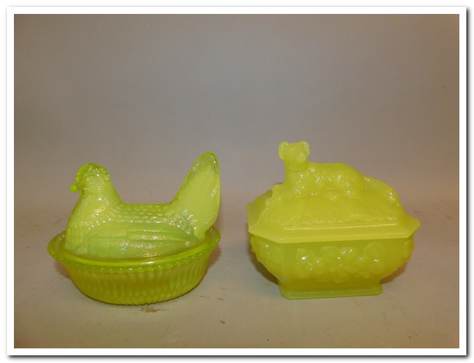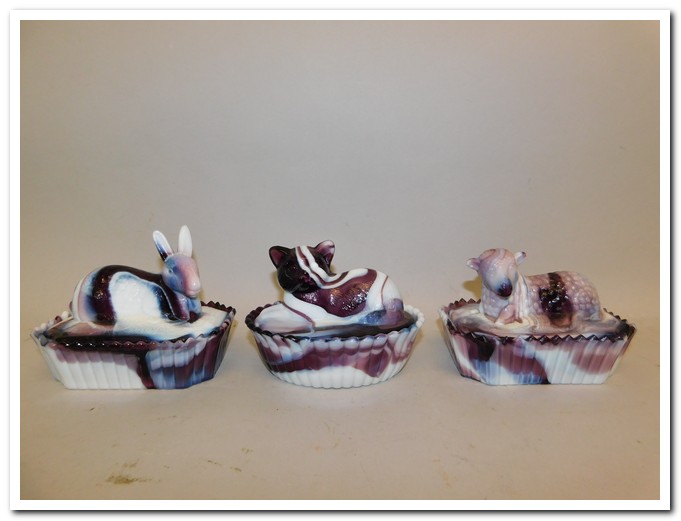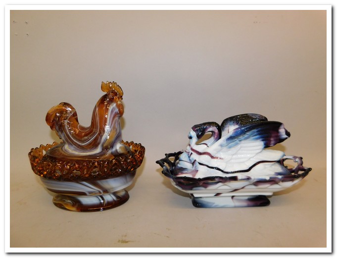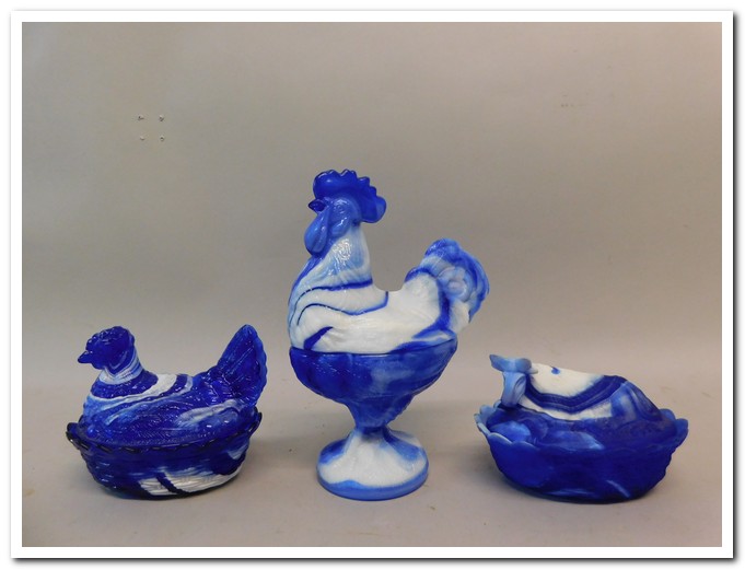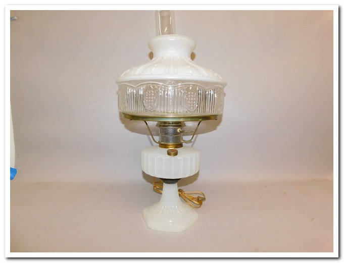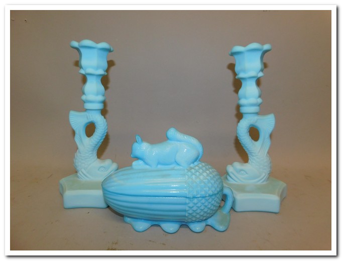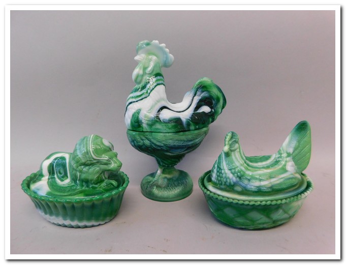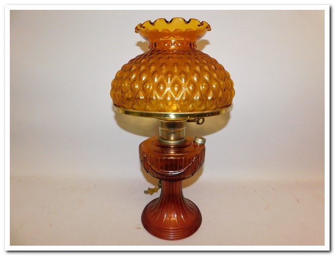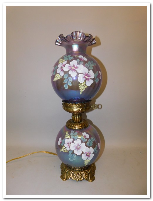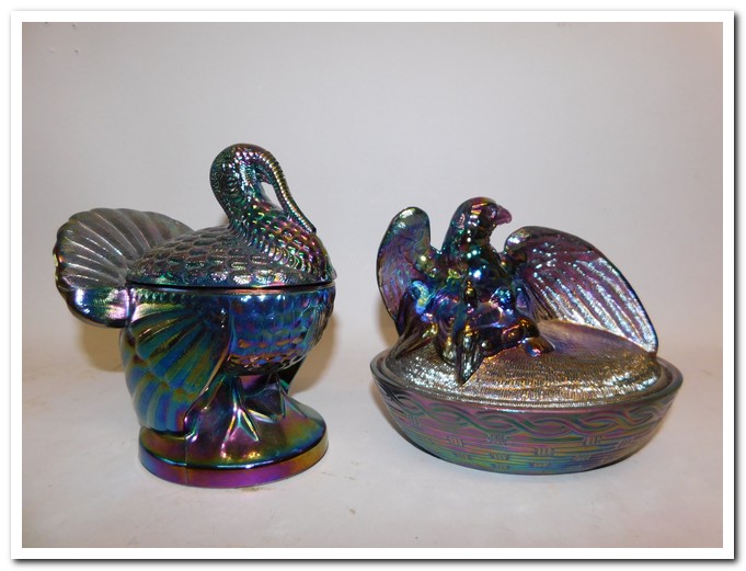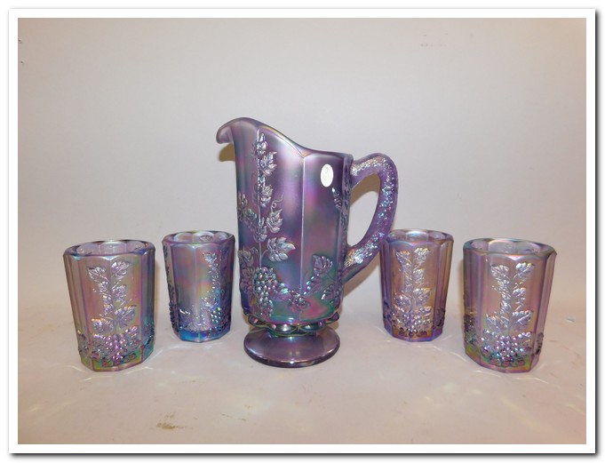 Carnival glass Peacock at Fountain water set, Fenton glass, Aladdin kerosene