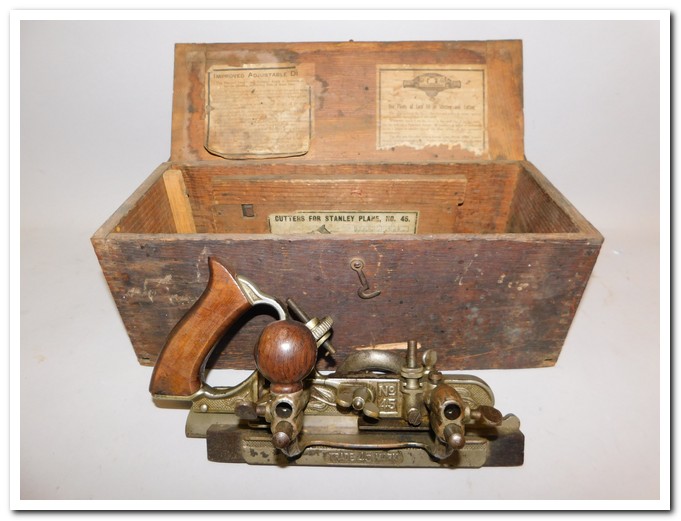 stoneware decorated crocks, Stanley #45 plane in original box, Thomas Hart