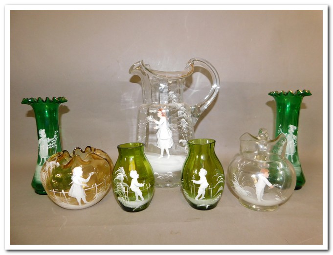 Tiffany, great Victorian art glass, many Mary Gregory decorated